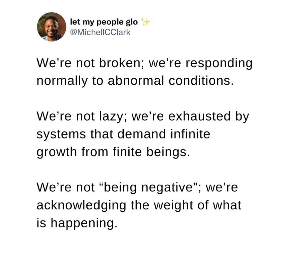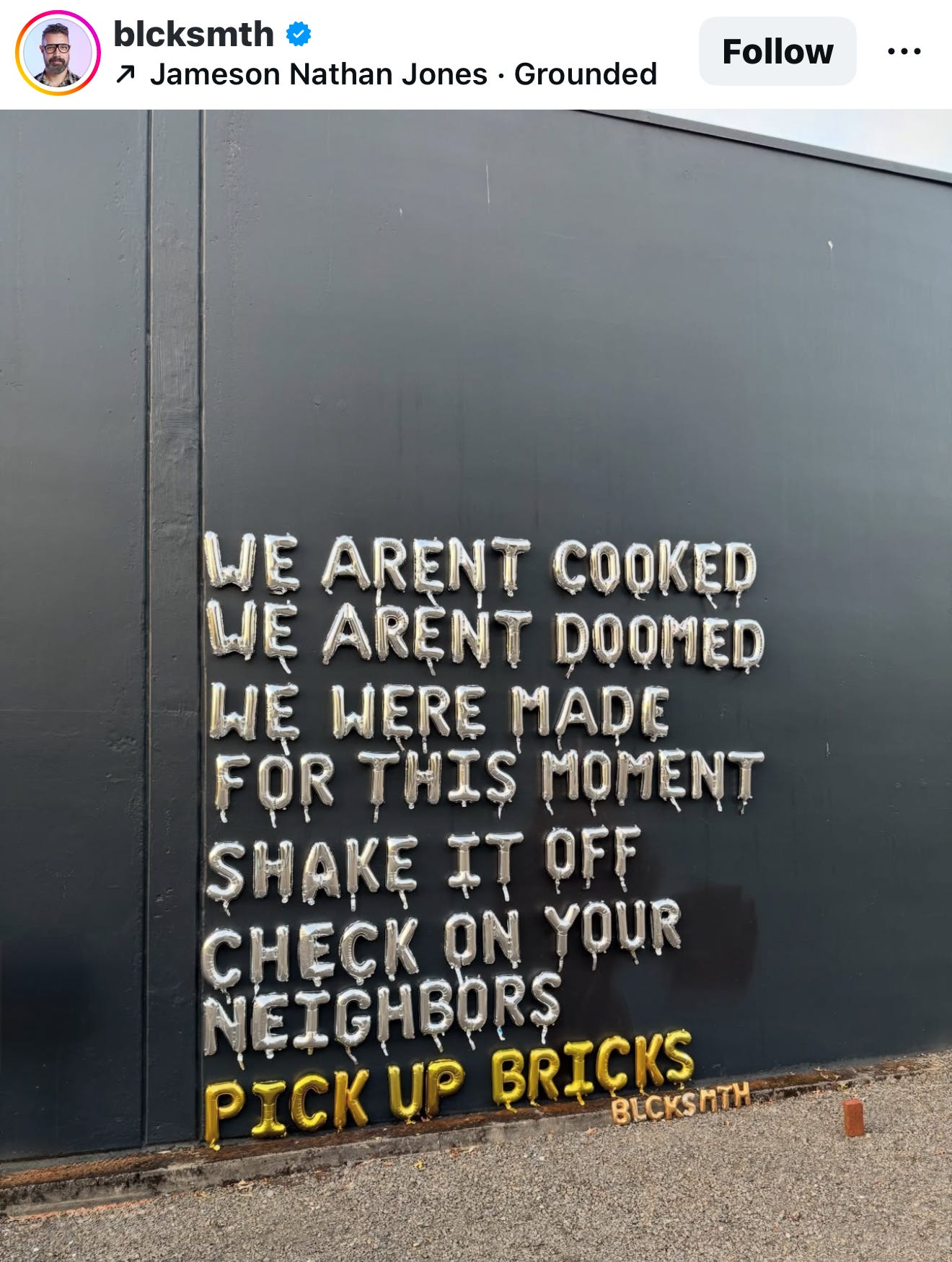 I won’t tell you not to prepare for what’s coming, not to help those in need in our communities, or not to take this danger seriously. We were made to take care of each other. We must build community resilience. And we have to keep paying attention. (I recommend the GPL News Briefs, which keep me informed without the heart palpitations news gives me. Watch on YT and get deets & source links on our Substack.)3