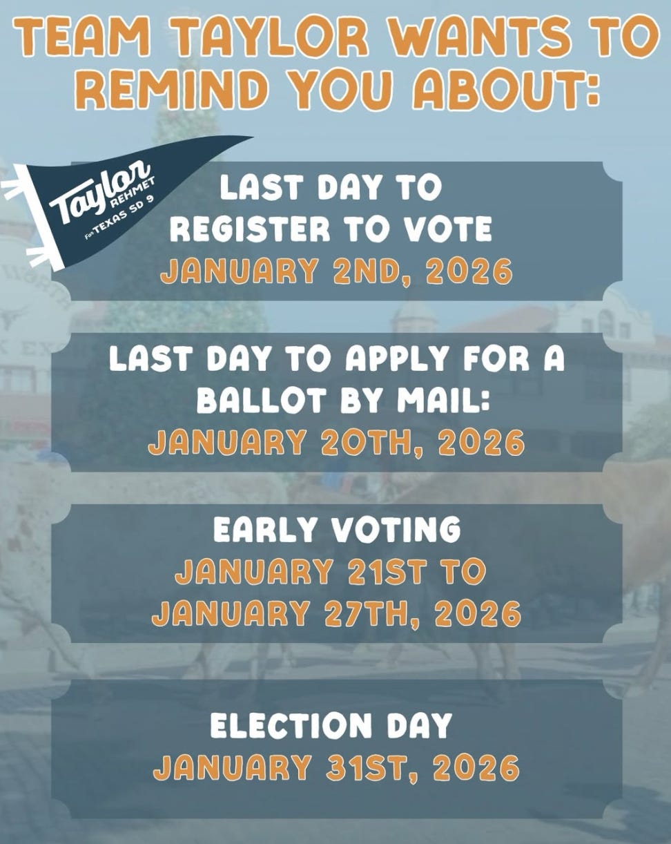 If you live in and around the Fort Worth / Midcities area, you get to vote for Taylor Rehmet for Texas Senate District 9. I’m jealous - I’d love to vote for Taylor, a veteran and union worker who surprised everyone winning the majority of the votes in his fall election.