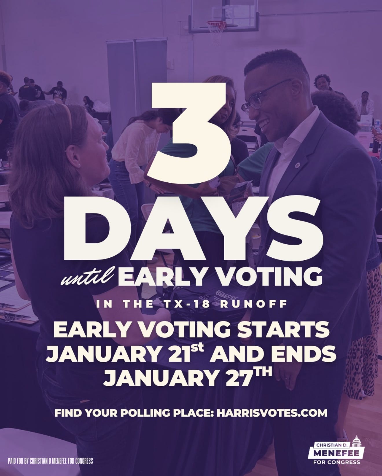 If you live in Houston, you get to vote for Christian Menefee for Congress. Texas House Dist 18 is having a runoff following the passing of Rep Sylvester Turner (may he rest in power). Get Pod Local has proudly endorsed our friend and fellow progressive Christian Menefee for the seat and hope you will vote for him.