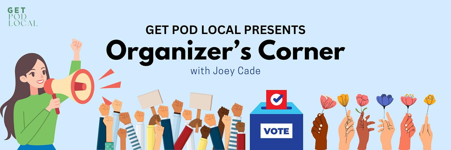 Welcome to Organizer’s Corner — a (free) newsletter from your friends at Get Pod Local! Because we can help you stay inform — but then what?